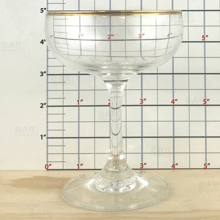 Here’s another great glass from the BarConic® glassware line, exclusive to BarProducts.com. This Coupe Glass, also known as Champagne Coupe, Champagne Saucer or Cocktail Coupe, has a dazzling gold rim around the top of the glass.It’s perfect for serving up champagne, cocktail drinks, or even appetizers.