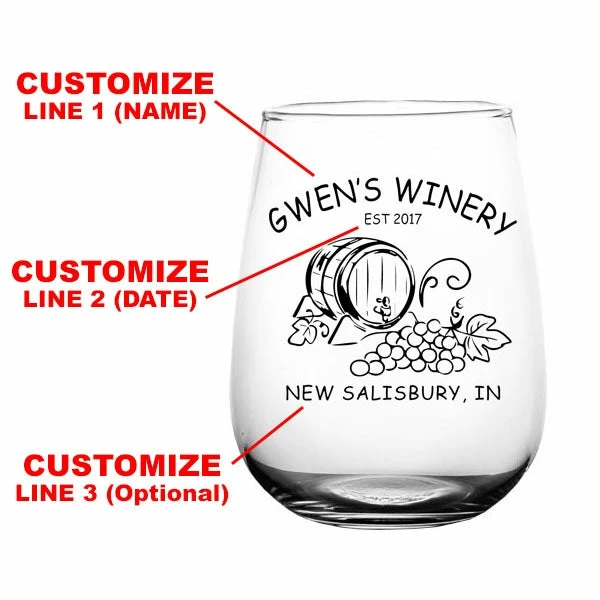 This 17 ounce Stemless Wine Glass is one of our best sellers. It showcases a high quality clarity and looks fantastic with our custom screen printing process. The ink will not wash off in the dishwasher, sending your personalized message for years to come.