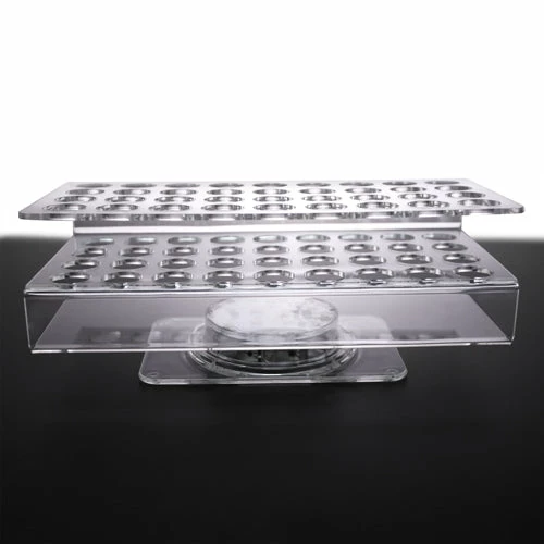 Our electronic LED test tube rack is the ultimate dink accessory and a must have item in any bar or nightclub. Great for shot girls and servers, this simple and attractive display gives you a unique and easy way to transport your test tube shots around the bar. The wireless remote control lets you arrange the color options to any specific setting you may want. Able to hold 36 test tube shots at a time, this bright and durable S shape test tube rack is perfect for storing and serving pre-made shooters on those busy nights. Effortlessly go from prep, storage and service all with this convenient and stylish LED shooter shot tray. Easy to spot in any dark place, this test tube shot rack wonโt be knocked over or lost in a crowded dark bar. This fun and vibrant test tube holder is a great way to attract customers and draw some extra attention to your specialty shots. Able to fit securely on any standard cocktail serving tray, this remarkable light up test tube holder is the ultimate revenue generator. Order one today and light up the party with a simple click of a button. (Test tubes sold separately)
