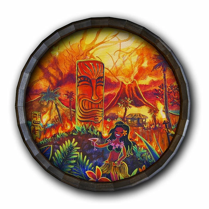 This barrel top sign is made in the USA, and handcrafted in our own woodshop. The print on the wood features beautiful vibrant colors, and is perfect for tiki or home bars!