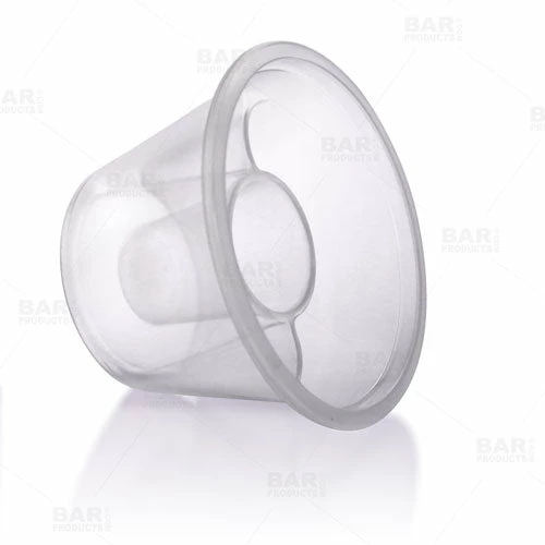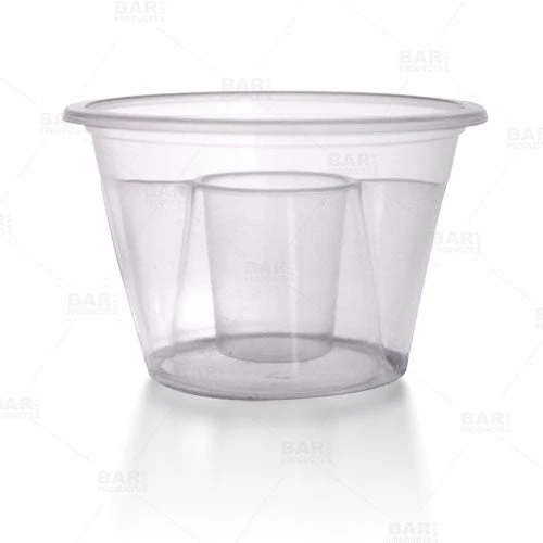 These plastic Bomb SHOTZ® are the smart way to serve up specialty shots- the translucent color displays well when serving and are easily disposable. The inner shot chamber holds a 7/8oz pour and the two outer chambers combined hold 2 1/4oz of liquor or mixers. They have ridged sides for easy handling. Sold in packs of 50 with four color options available.